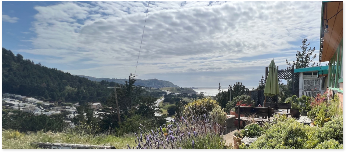 The Valley Mar terrace view of the Pacific Ocean & the scenic Hwy 1.